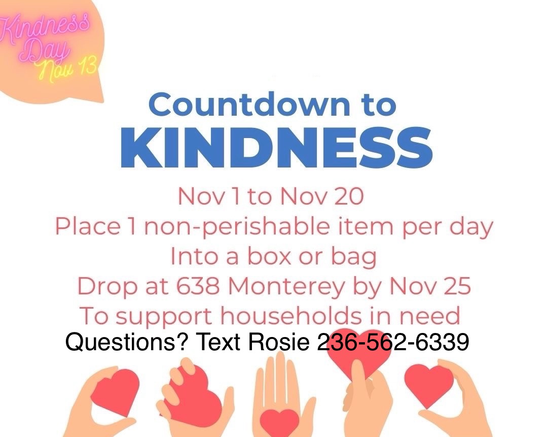 World Kindness day is on Thursday Nov 13th! There will be a laundry basket located near the "waving window" AND near the main entrance with the ramp at both drop off and pick up for those who want to contribute an item or two. For those who are filling our own box or bag drop off information is below! Thanks for helping PAC give BACK!